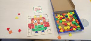 — **Развивается мышление.** Ребенок учится анализировать, сравнивать цвета и формы, следовать схеме или придумывать собственный узор. Он осваивает логику: если я положу красную фишку здесь, а синюю здесь, получится цветочек.